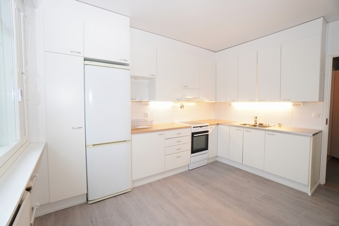 Valoisa kolmio tilavilla huoneilla ja hyvällä pohjaratkaisulla. Asuntoon on vaihdettu kaunis vaalea laminaattilattia ja seinät on maalattu. Kaikki pinnat hiljattain tehty, joten asunto on yleisilmeeltään siistikuntoinen.