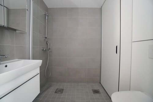 laattalattia; laattaseinä, allaskaappi; peilikaappi, suihku, pesukone; pesukonevalmius, lattialämmitys