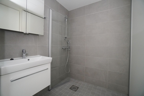 Kylpyhuoneessa on pyykinpesukone valmiina asukkaan käyttöön. Lisäksi tilassa on mukavuutta lisäävä lattialämmitys.