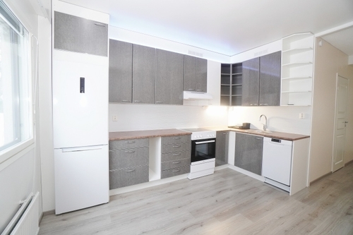 Tämä asunto on neliöiltään pienen kaksion kokoinen. Harvinaista on myös näin suuri keittiö tämän kokoluokan asunnoissa. Keittiö on myös kauttaaltaan remontoitu ja kodinkoneet ovat täysin uutta vastaavia.