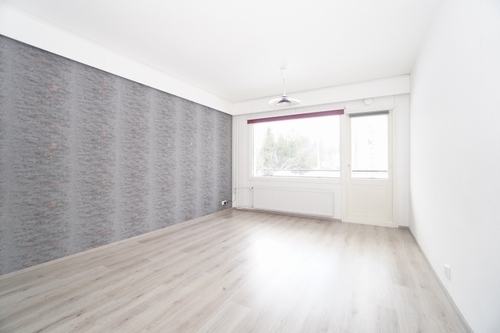 Asunnon lattiat on vaihdettu ja seinäpinnat on uusittu. Kauniin vaaleat ja raikkaat sävyt tekevät kodista valoisan.