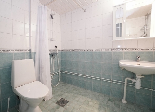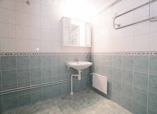 laattalattia; laattaseinä, peilikaappi, suihku, pesukonevalmius