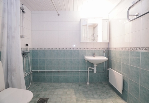 Säilytystilana toimii iso vaatehuone. Kylpyhuoneeseen saa vaikka pesutornin tarvittaessa.