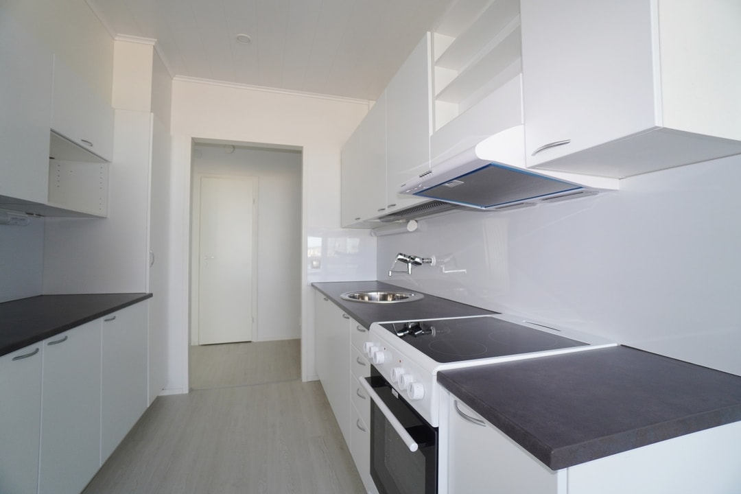 erillinen keittiö, laminaattitasot keittiössä, keraaminen- tai induktioliesi; liesituuletin, , jääkaappipakastin, paljon kaappitilaa; mikrohylly