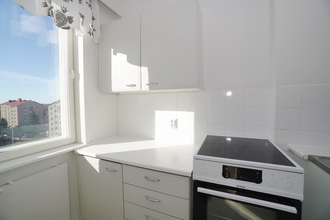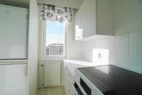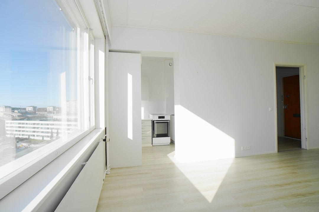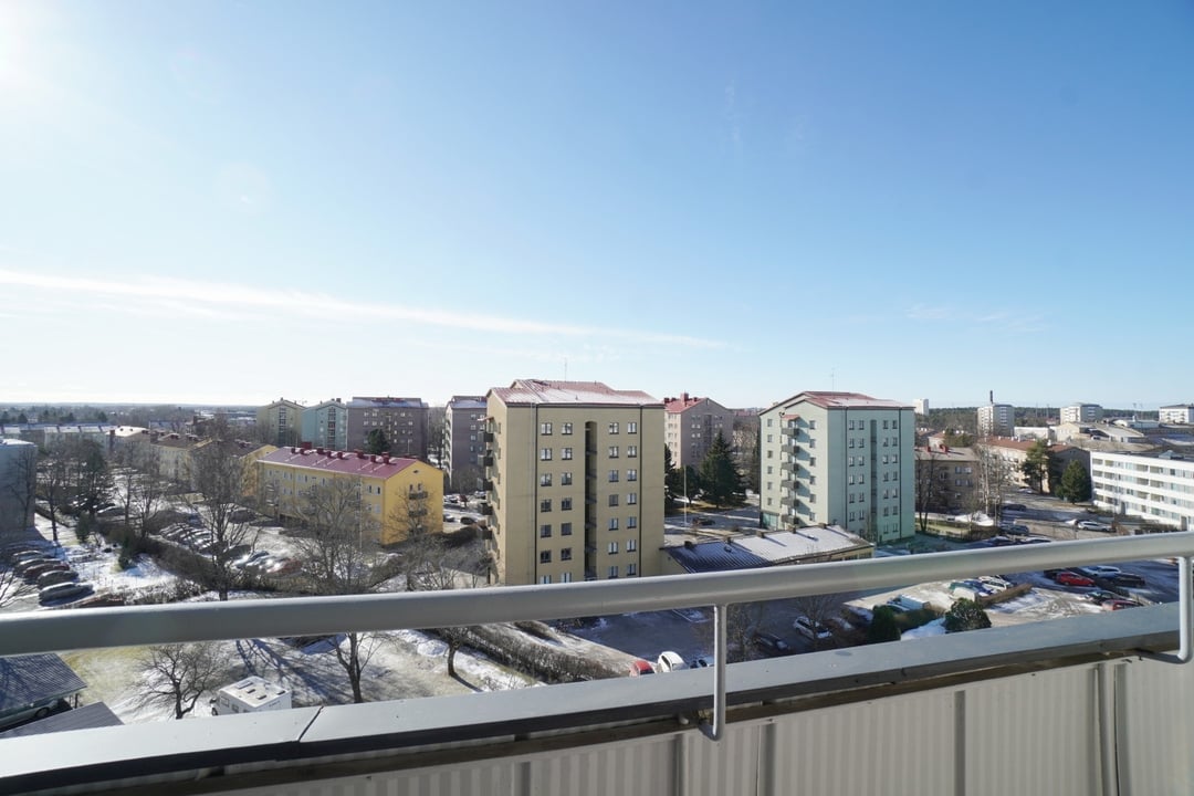 Kunnostettu hieno kaksio, johon on vaihdettu laminaatti sekä maalattu seinät. Keittokomerossa on kaikki tarpeellinen ja hyvin kaapistoja. Makuuhuone on tilava ja valoisa. Kylpyhuoneessa on liitännät pesukoneelle ja tila on siisti. Parvekkeelta on komeat kahdeksannen kerroksen näkymät kattojen ylle.