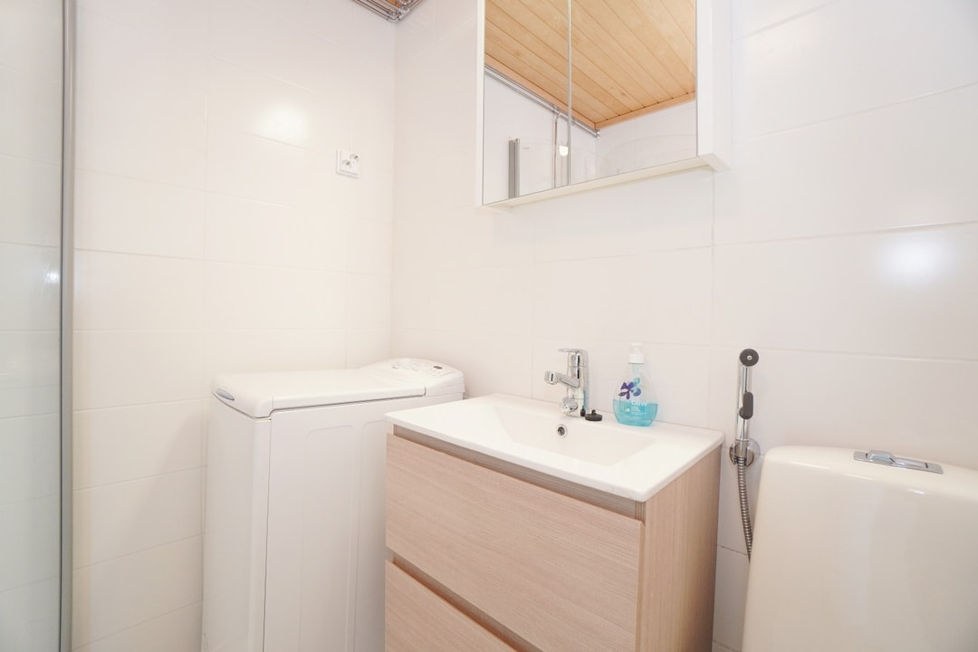 laattalattia; laattaseinä, allaskaappi; peilikaappi, suihku; suihkuseinä, pesukonevalmius; taloyhtiössä pesutupa, lattialämmitys
