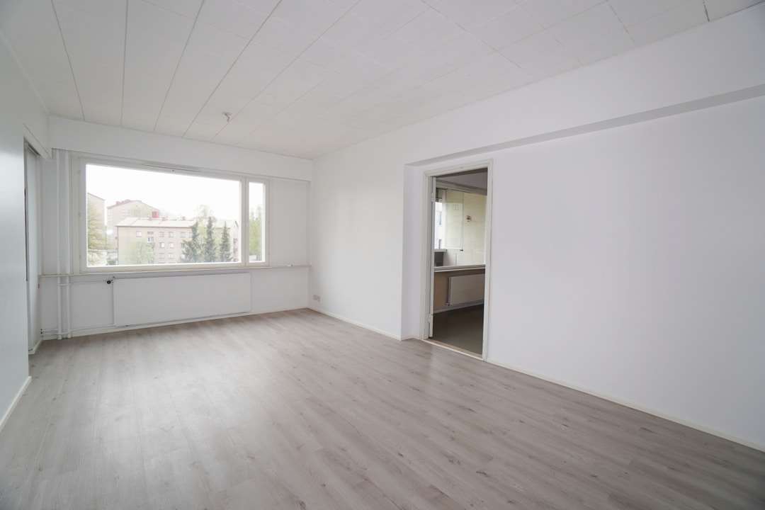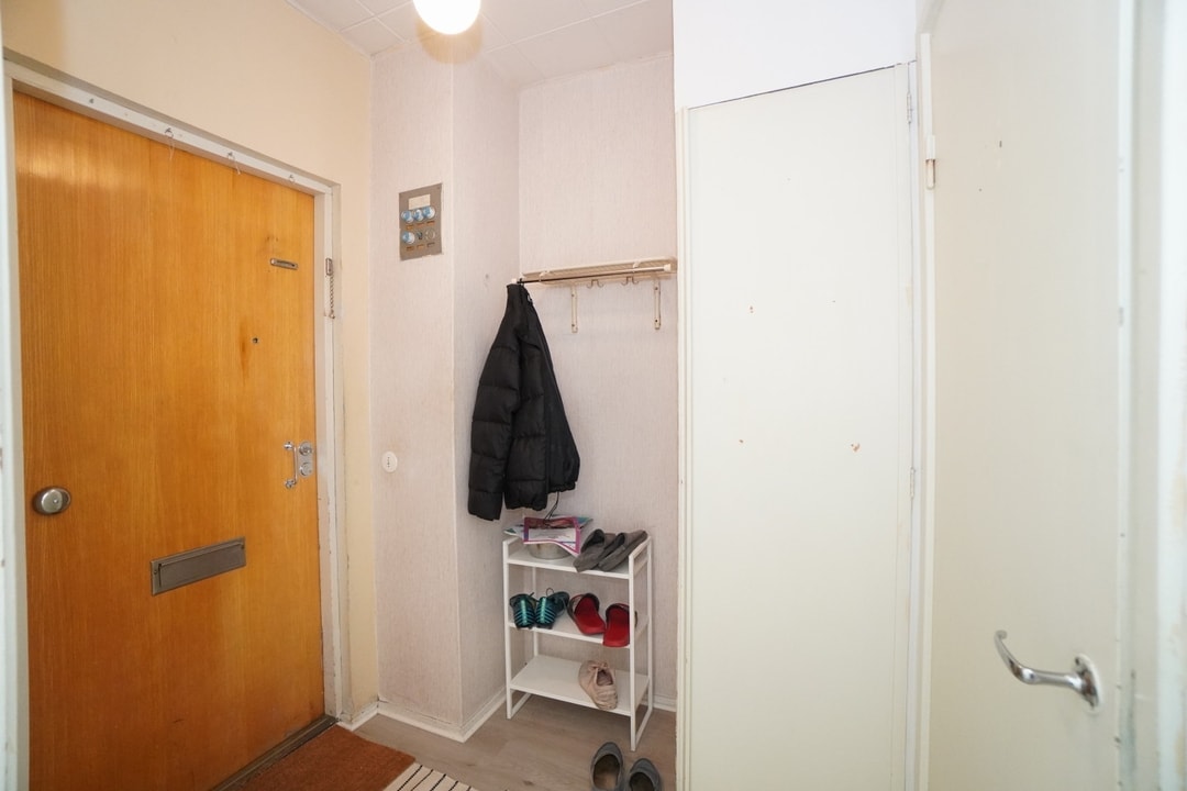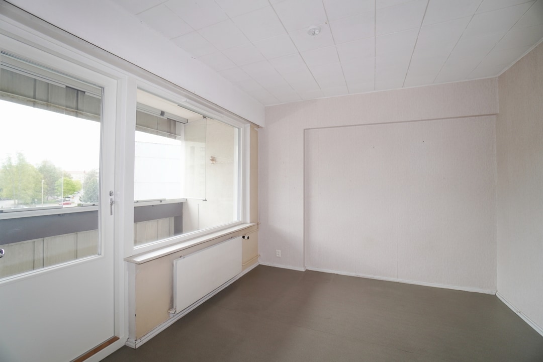 Valoisa asunto, jossa on hiljattain uusitut vinyylilankkulattiat ja vaaleat seinät. Makuuhuoneeseen mahtuu parisänky ja olohuoneen yhteydessä on lasitettu parveke. Keittokomerossa on varustuksena hella sekä siistit kaapistot. Kylpyhuoneessa on liitännät pesukoneelle.