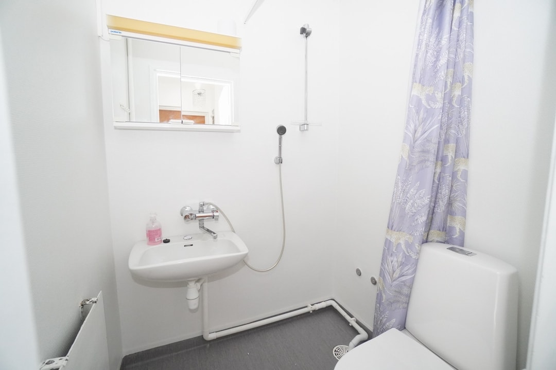 muovimatto; suihkutapetti, peilikaappi, suihku, taloyhtiössä pesutupa