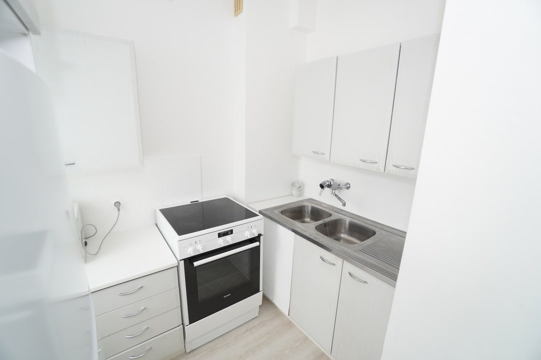 keittokomero, terästasot keittiössä; laminaattitasot keittiössä, keraaminen- tai induktioliesi, jääkaappi pakastelokerolla