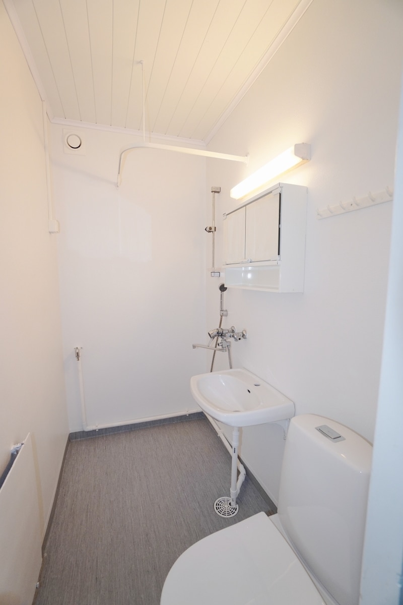 muovimatto; suihkutapetti; osittainen laattaseinä, peilikaappi, suihku, pesukonevalmius; taloyhtiössä pesutupa,