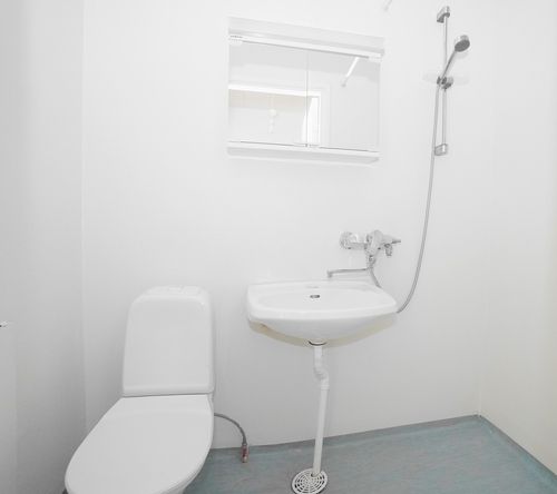 muovimatto; suihkutapetti, peilikaappi, suihku, pesukonevalmius; taloyhtiössä pesutupa