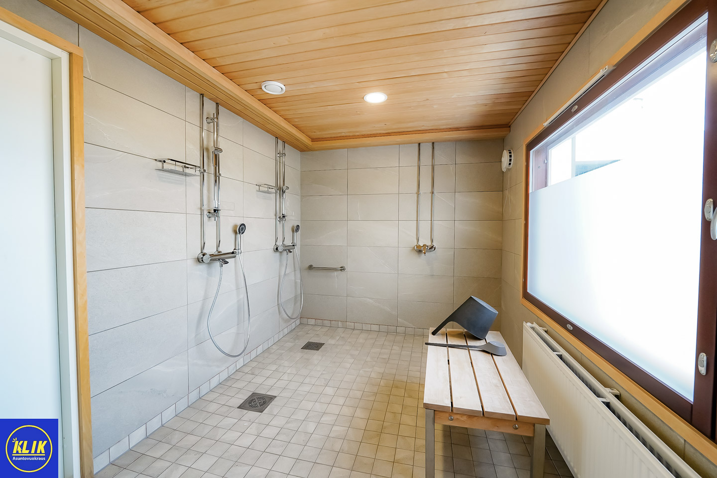 Taloyhtiöstä löytyy täydellisesti remontoidut kylpyhuone-ja saunaosasto asukkaiden käyttöön. Kuivaushuone on myös uusittu, samoin pesutupa kodinkoneineen.