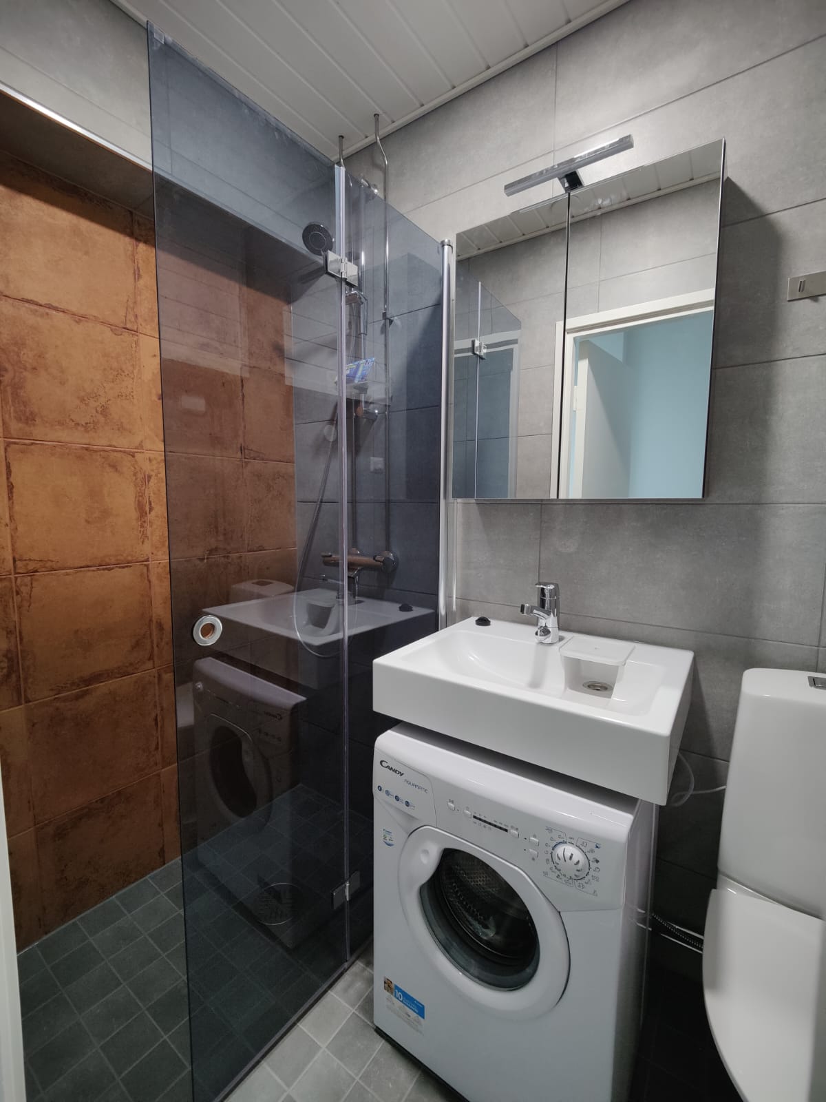 laattalattia; laattaseinä, , peilikaappi, suihku; suihkuseinä, , pesukone valmiina asunnossa; pesukonevalmius; taloyhtiössä pesutupa; taloyhtiössä kuivaushuone, kylpyhuoneessa lattialämmitys; taloyhtiössä sauna, , , , ,