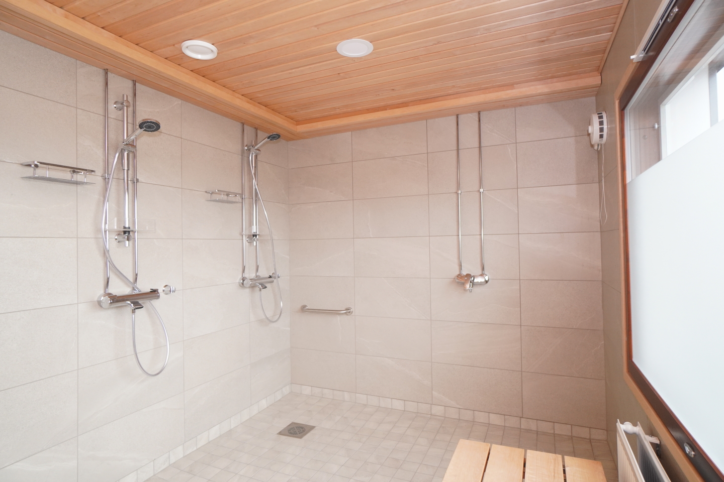Taloyhtiöstä löytyy täydellisesti remontoidut kylpyhuone-ja saunaosasto asukkaiden käyttöön. Kuivaushuone on myös uusittu, samoin pesutupa kodinkoneineen.