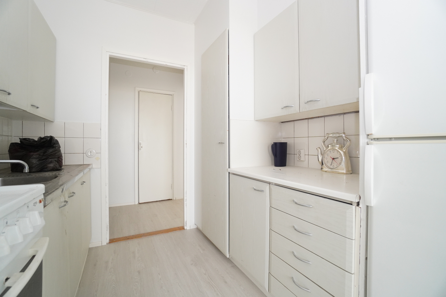 erillinen keittiöterästasot keittiössä; laminaattitasot keittiössä, sähköliesi, astianpesukone (60cm), jääkaappipakastin, tilaa isolle ruokapöydälle; paljon kaappitilaa; paljon työskentelytilaa; suuri tiskipöytä , , , , , ,