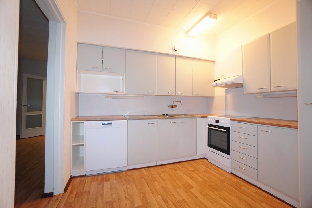 Tämän kodin keittiö on ehdottomasti kodin sydän. Se on hyvällä maulla remontoitu ja kodinkoneet on uusittu hiljattain. Astianpesukone on valmiina asukkaan käyttöön. Ruokapöytäkin mahtuu tilaan hyvin. Tämä koti sopii hyvin isommallekin perheelle, sillä makuuhuoneita on peräti kolme. Eteisessä on runsaasti säilytystilaa ja asunnossa on lisäksi erillinen vaatehuone.