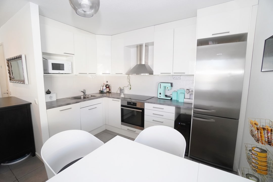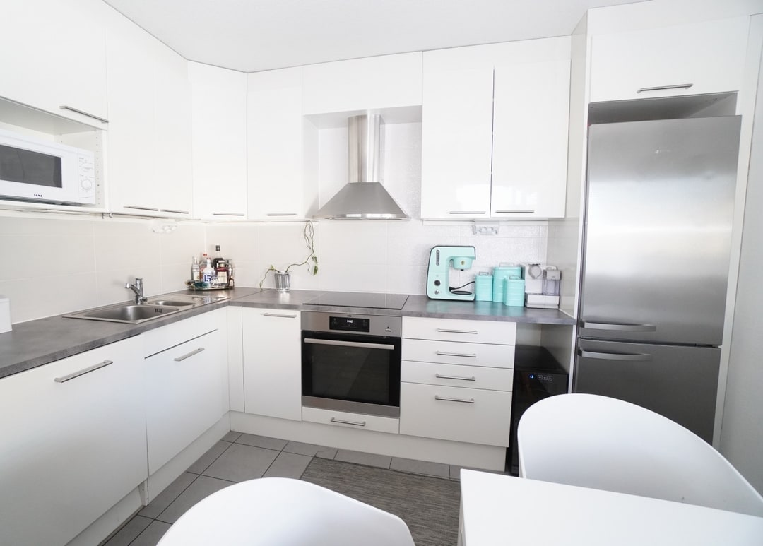 erillinen keittiö, laminaattitasot keittiössä, keraaminen- tai induktioliesi; liesi ja uuni erikseen; liesituuletin, astianpesukone (60cm); Integroitu, jääkaappipakastin, tilaa isolle ruokapöydälle; paljon kaappitilaa; paljon työskentelytilaa; mikrohylly