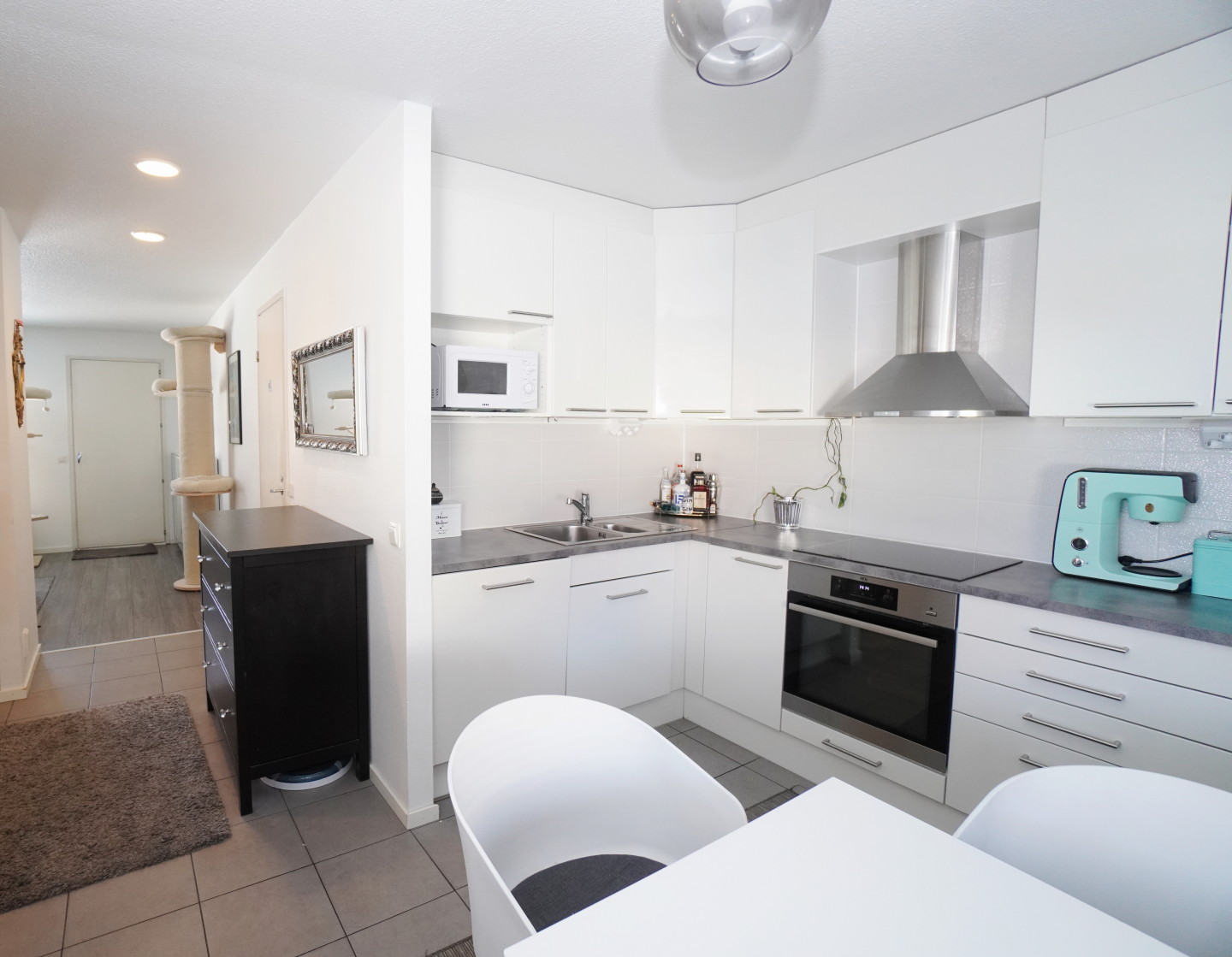 erillinen keittiölaminaattitasot keittiössä, keittotaso ja kalusteuuni; liesituuletin, astianpesukone (60cm), jääkaappipakastin, tilaa isolle ruokapöydälle; paljon kaappitilaa; paljon työskentelytilaa