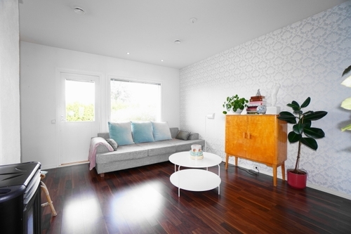 Koko asunnon lämmityksestä huolehtii pelleteillä lämpiävä takka ja lattialämmitys. Aivan upea kokonaisuus järkevän matkan päässä keskustan palveluista.