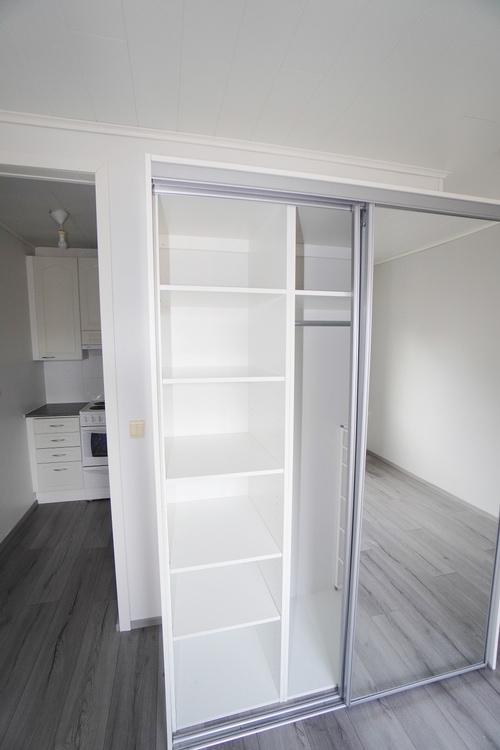 Lattiat: vinyylilankkulattiat, seinät: maalatut seinät; tapetoidut seinät, katto: maalattu katto; paneelikatto, ikkunat:tuuletusikkunat, erillinen makuuhuone; makuuhuoneessa säilytystilaa; makuuhuoneessa vaatekaapit; parisänky mahtuu makuutilaan, , Huoneistokohtaiset erilliset säilytystilat taloyhtiön käytännön mukaan, muut tilat: