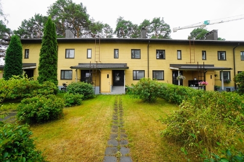Asuntoon kuluu oma pieni piha sekä terassi. Etupiha sen sijaan on hyvin iso ja hyvin hoidettu.