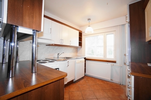 avokeittiö, laminaattitasot keittiössä, sähköliesi; liesituuletin, astianpesukone (60cm); pesukoneliitos, jääkaappipakastin, tilaa isolle ruokapöydälle; paljon kaappitilaa; paljon työskentelytilaa