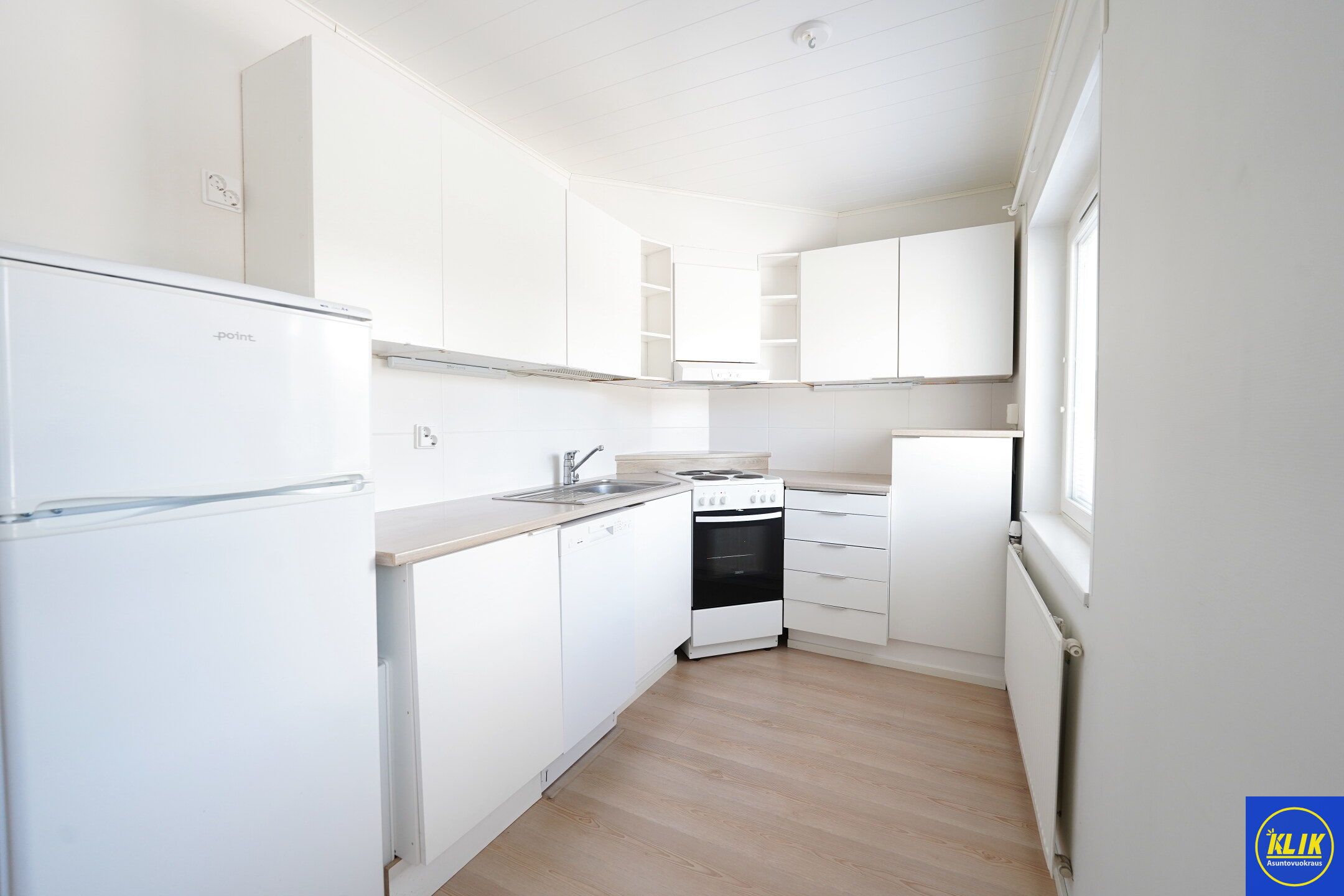 erillinen keittiölaminaattitasot keittiössä, sähköliesi; liesituuletin, astianpesukone (45cm); pesukoneliitos, jääkaappipakastin; jenkkikaappi, tilaa isolle ruokapöydälle , , , , , ,