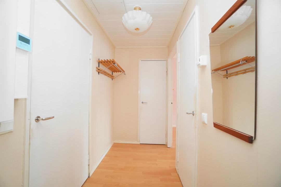 Ensimmäisen kerroksen kaksio rauhallisesta taloyhtiöstä. Tässä talossa on toteutettu putkiremontti ja ikkunat on vaihdettu, joten isoja remontteja ei ole tiedossa lähivuosina. Keittiö on siistikuntoinen ja olohuoneeseen mahtuu ruokapöytä.