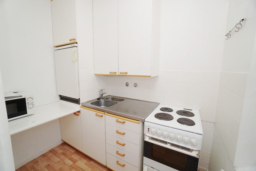keittokomero, laminaattitasot keittiössä, sähköliesi, jääkaappi; jääkaappipakastin, mikro valmiina keittiössä