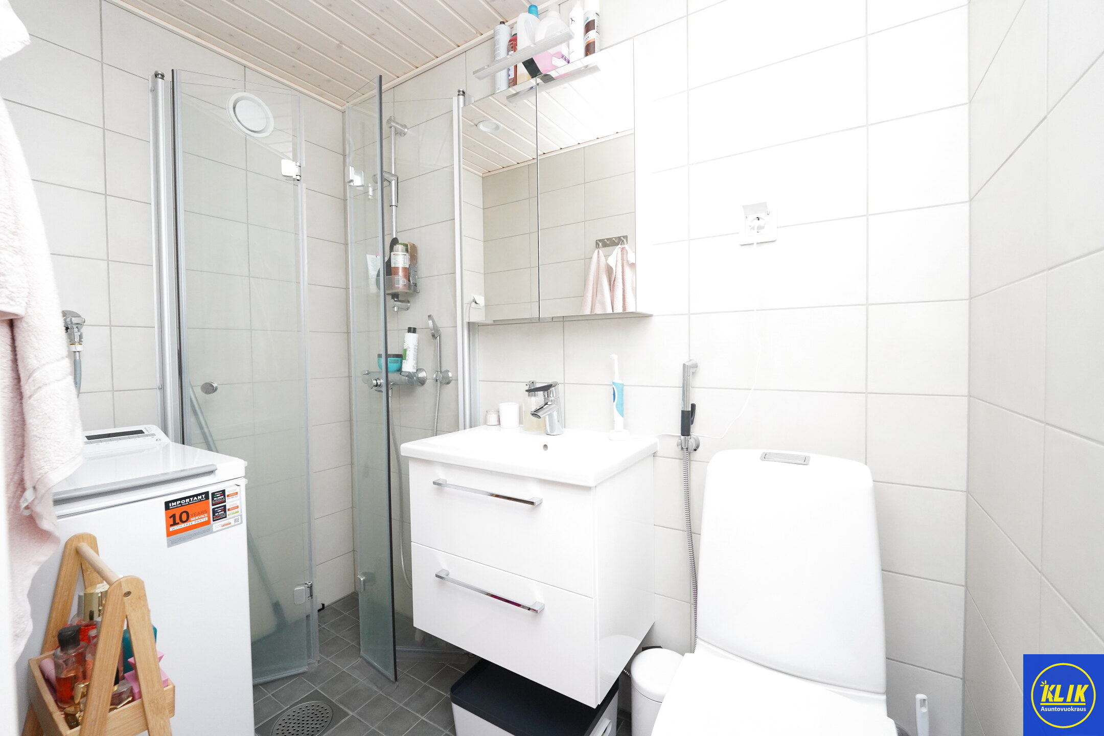 laattalattia; laattaseinä, , allaskaappi; peilikaappi, suihku; suihkuseinä, , pesukonevalmius, kylpyhuoneessa lattialämmitys