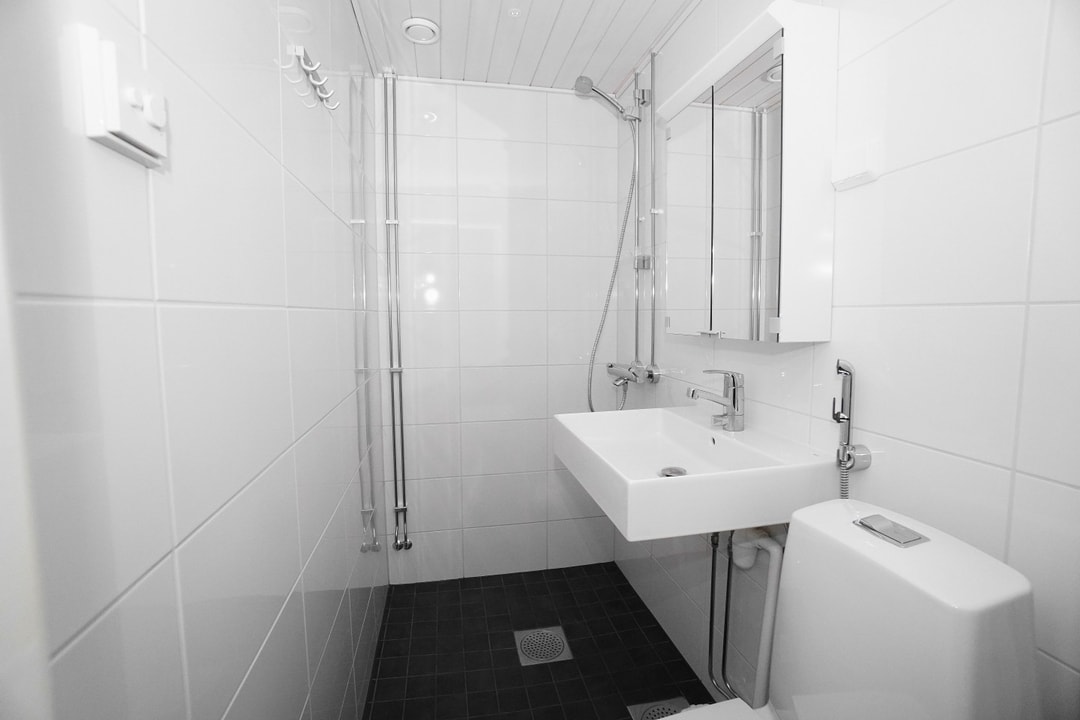 Putkiremontin yhteydessä kylpyhuone on täysin uusittu. Tilassa on uudet kalusteet ja mukavuutta lisäävä lattialämmitys. Kylpyhuoneessa on liitännät pesukoneelle.