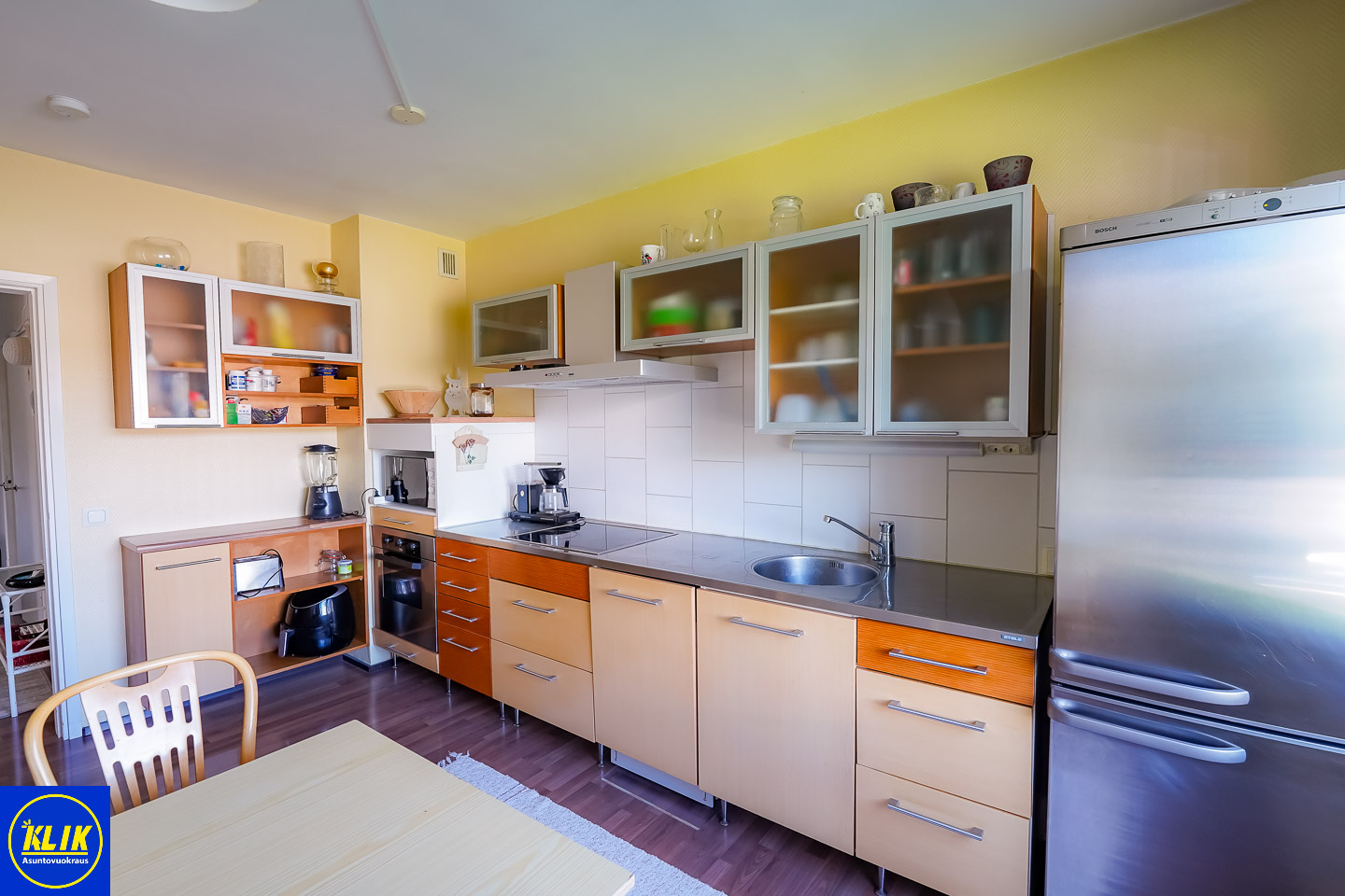 erillinen keittiölaminaattitasot keittiössä, keraaminen- tai induktioliesi; liesituuletin, astianpesukone (45cm), jääkaappipakastin, paljon kaappitilaa; paljon työskentelytilaa; suuri tiskipöytä; mikrohylly , , , , , ,