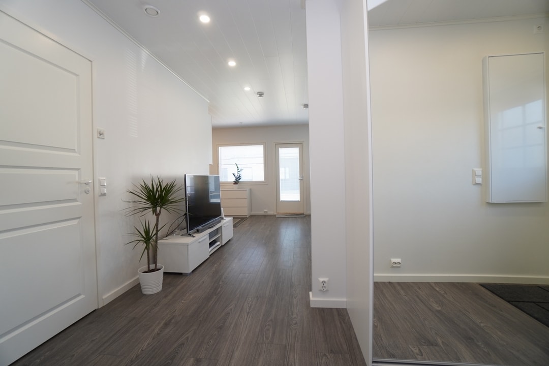 Lattiat: laminaattilattiat, seinät: maalatut seinät; tapetoidut seinät, katto: paneelikatto, ikkunat:sälekaihtimet; tuuletusikkunat, erillinen makuuhuone; useita makuuhuoneita; makuuhuoneessa säilytystilaa; makuuhuoneessa vaatekaapit; parisänky mahtuu makuutilaan, avoterassi, Huoneistokohtaiset erilliset säilytystilat taloyhtiön käytännön mukaan, muut tilat: autopaikat taloyhtiön käytännön mukaisesti; valoisa asunto; terassi; oma piha; päätyhuoneisto; koneellinen ilmanvaihto; kuraeteinen