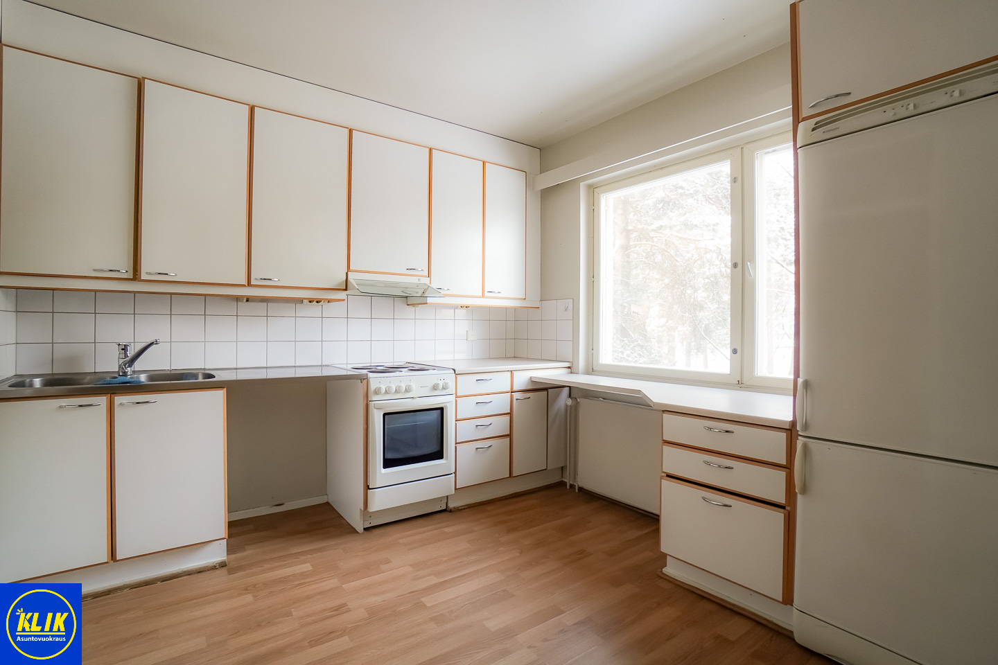 erillinen keittiölaminaattitasot keittiössä, sähköliesi, pesukoneliitos, astianpesukone on mahdollista asentaa, jääkaappipakastin, tilaa isolle ruokapöydälle; paljon kaappitilaa; paljon työskentelytilaa; suuri tiskipöytä , , , , , ,