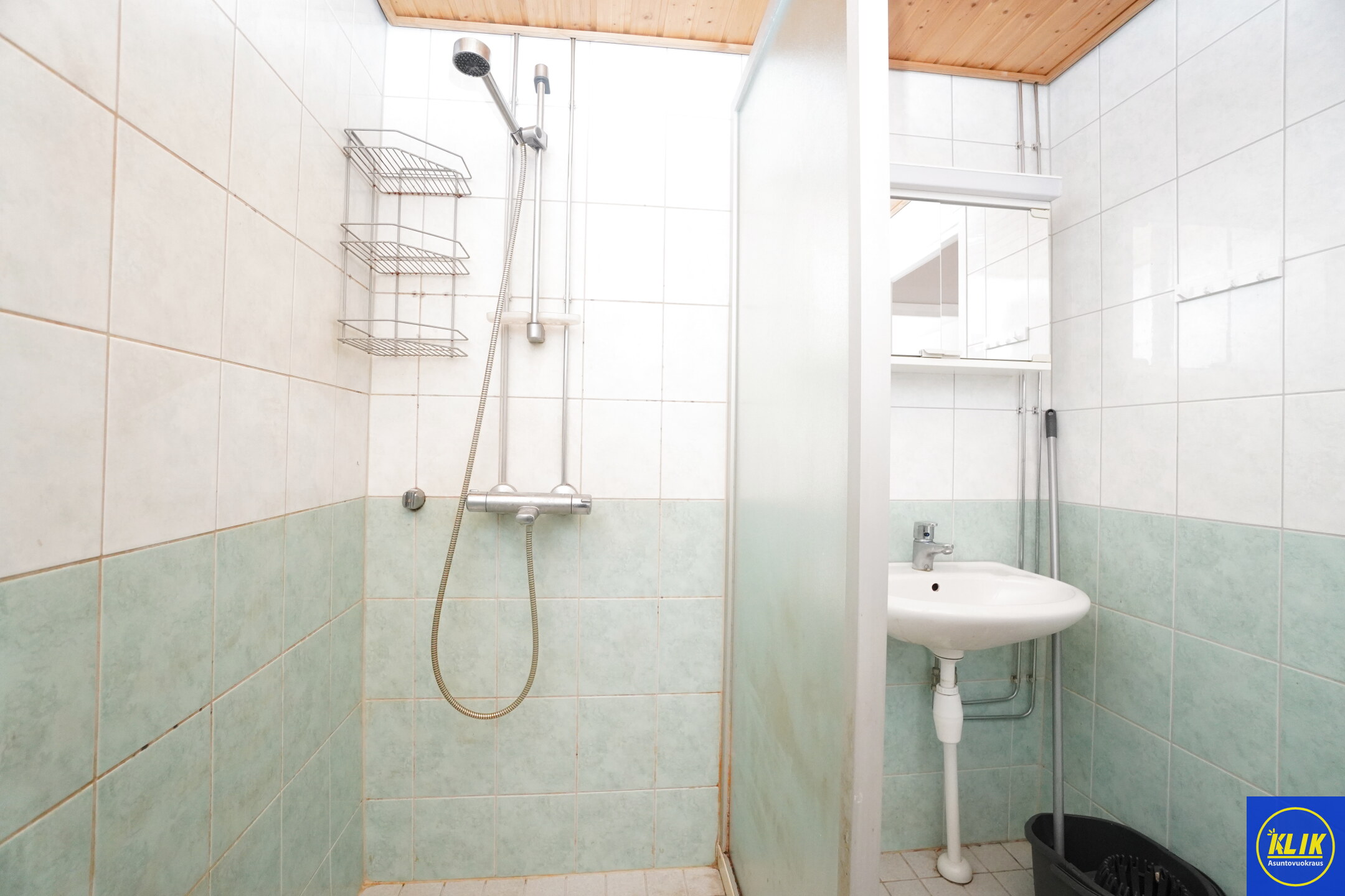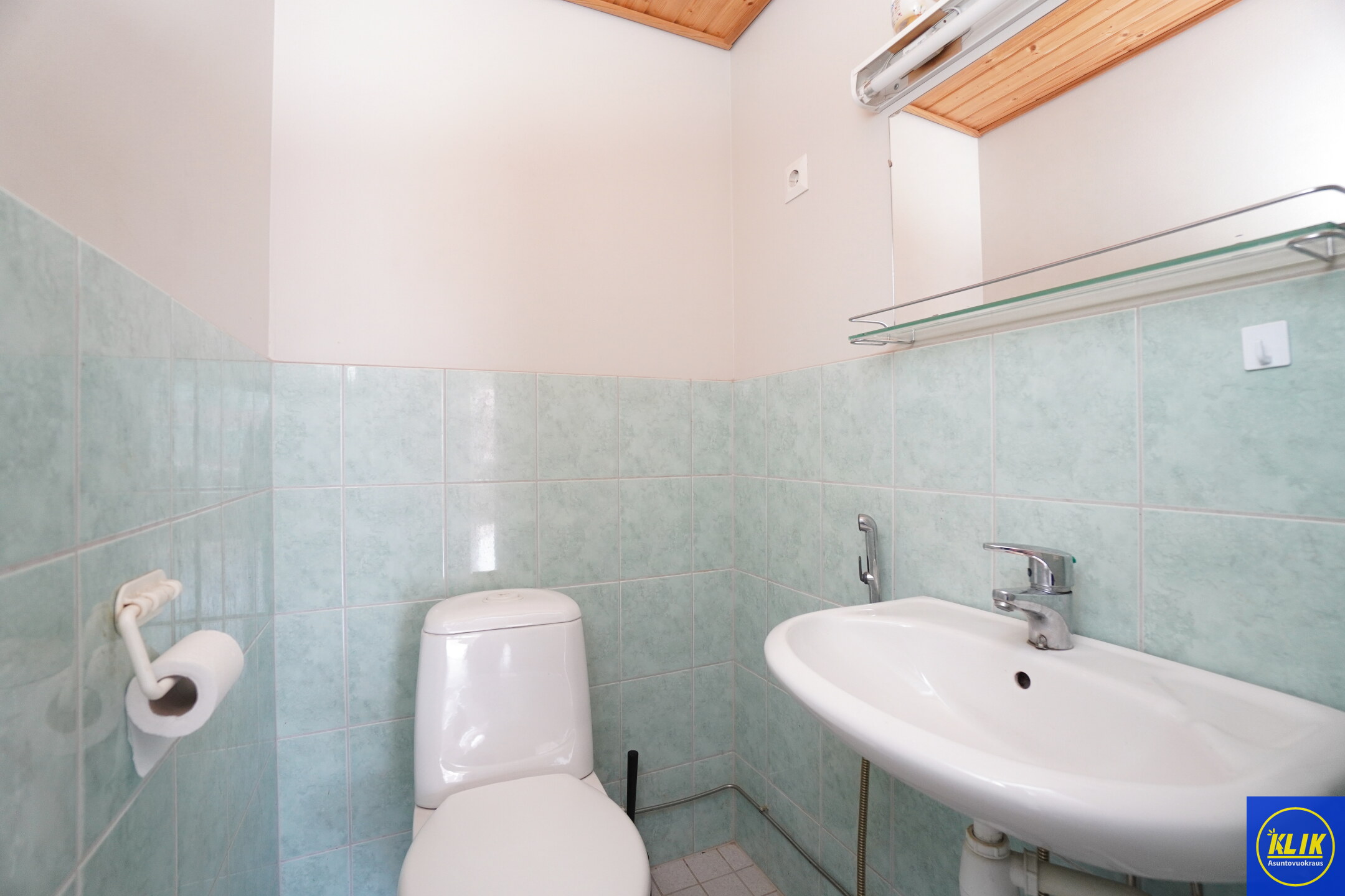 Laatoitettu ja tilava kylpyhuone on varustettu peilikaapilla ja pyykkikaapilla. Tilassa on pesukoneelle tai jopa pesutornille hyvin tilaa. Lisäksi asunnossa on erillinen wc!