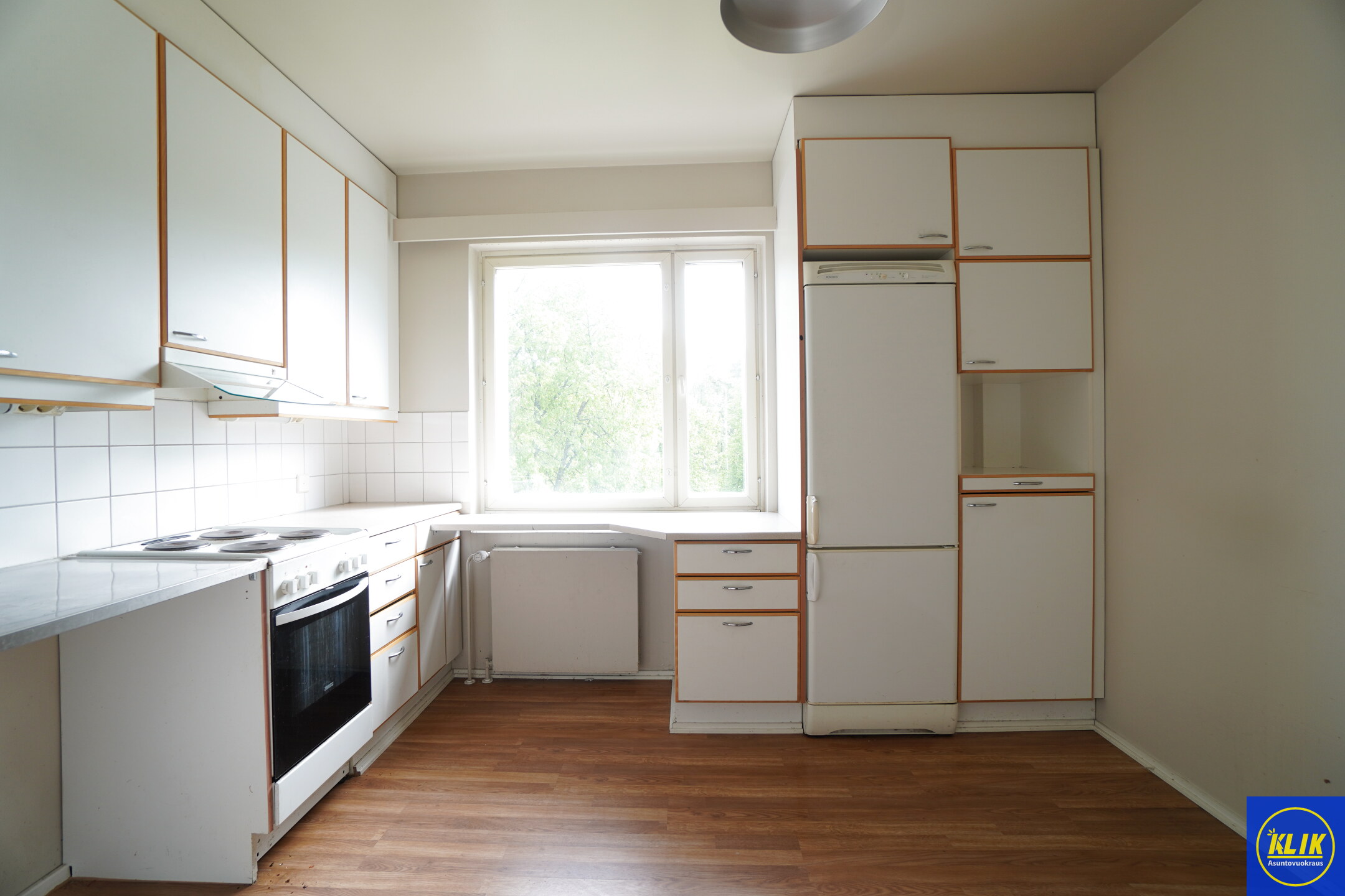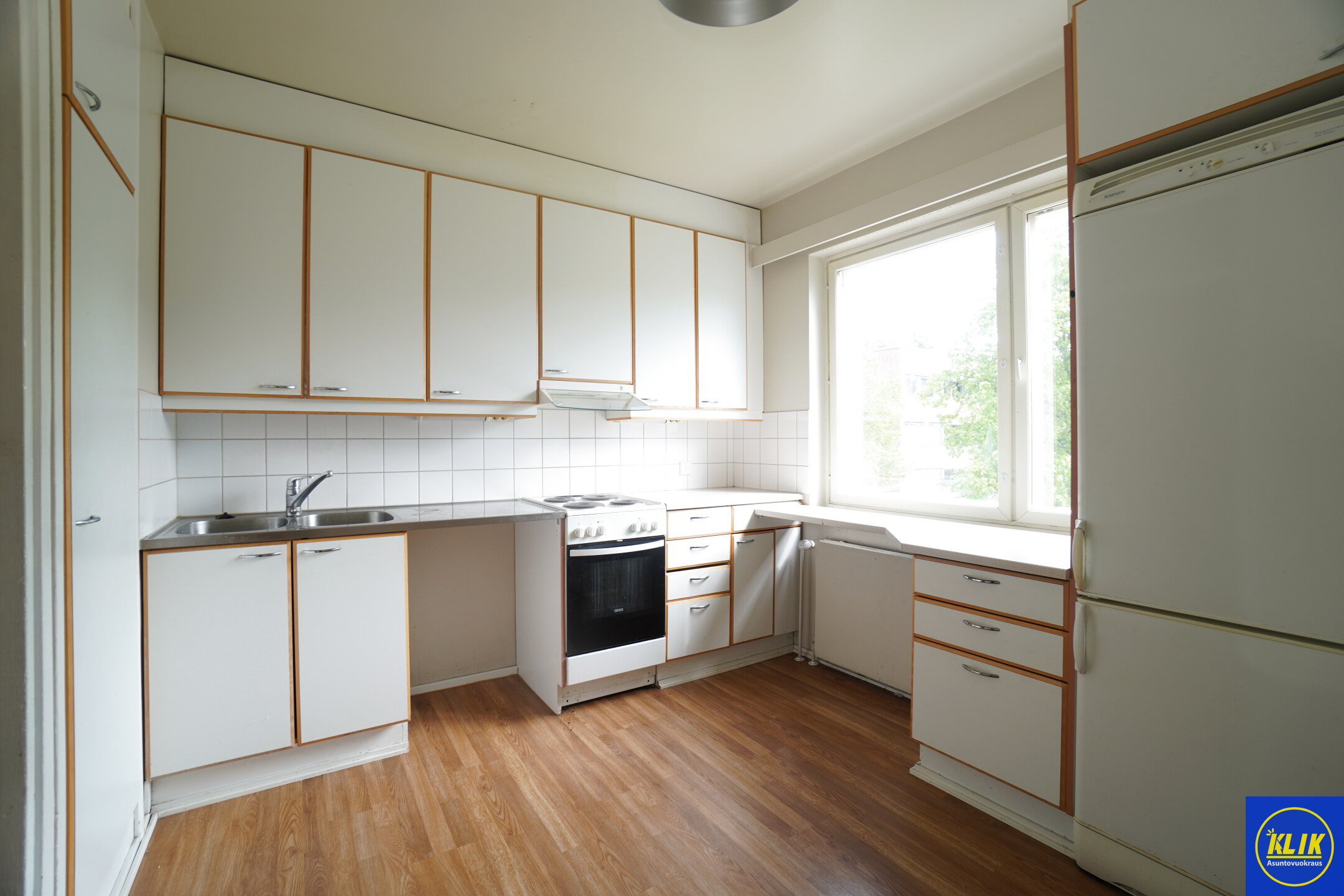 Keittiössä on hyvin työskentelytilaa ja tilaan mahtuu myös ruokailuryhmä. Vuokralaisella on mahdollisuus asentaa keittiöön astianpesukone, sillä paikka ja liitännät ovat valmiina.