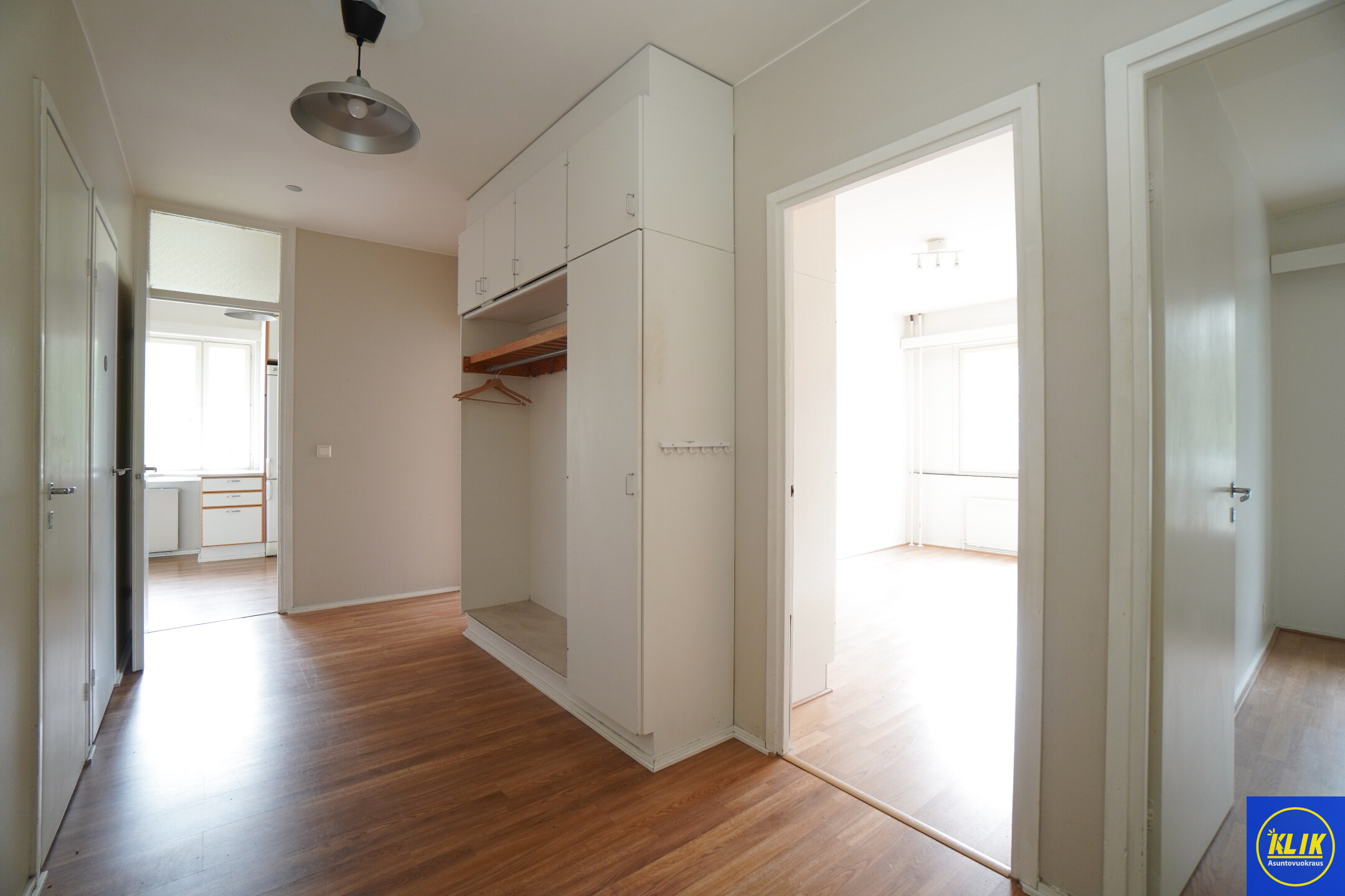 Säilytystilaa on myös hyvin, sillä asunnossa on reilusti kaapistoja. Lisäksi asunnossa on vaatehuone, johon on kulku eteisestä.