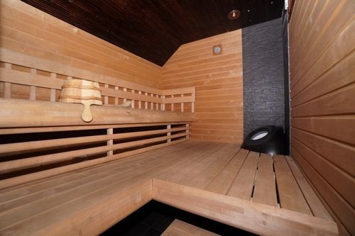 laattalattia; laattaseinä, allaskaappi; peilikaappi, suihku; useita suihkuja, pesukonevalmius, lattialämmitys; sauna
