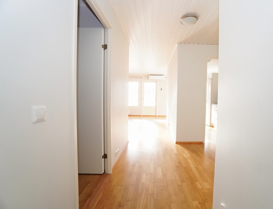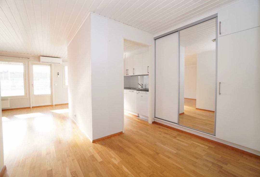 Tilava asunto hyvällä sijainnilla lähellä palveluita. Tämän kodin seinäpinnat ovat vaaleat ja lattiassa on kaunis parketti. Olohuoneessa on ilmalämpöpumppu, joka säästää lämmityskustannuksissa talvisin ja viilentää asunnon kuumina kesäpäivinä. Olohuoneesta on kulku isolle katetulle terassille takapihalle. Terassilla on kiva viettää aikaa kesäisin vaikka grillaten.