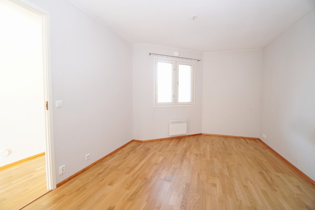 Makuuhuone on tarpeeksi tilava parisängylle ja asunnossa on säilytystä varten iso erillinen vaatehuone, sekä liukuovikaapistot. Kylpyhuone on iso, sinne saa tarvittaessa vaikka pesutornin ja tilan kruuna oma sauna.