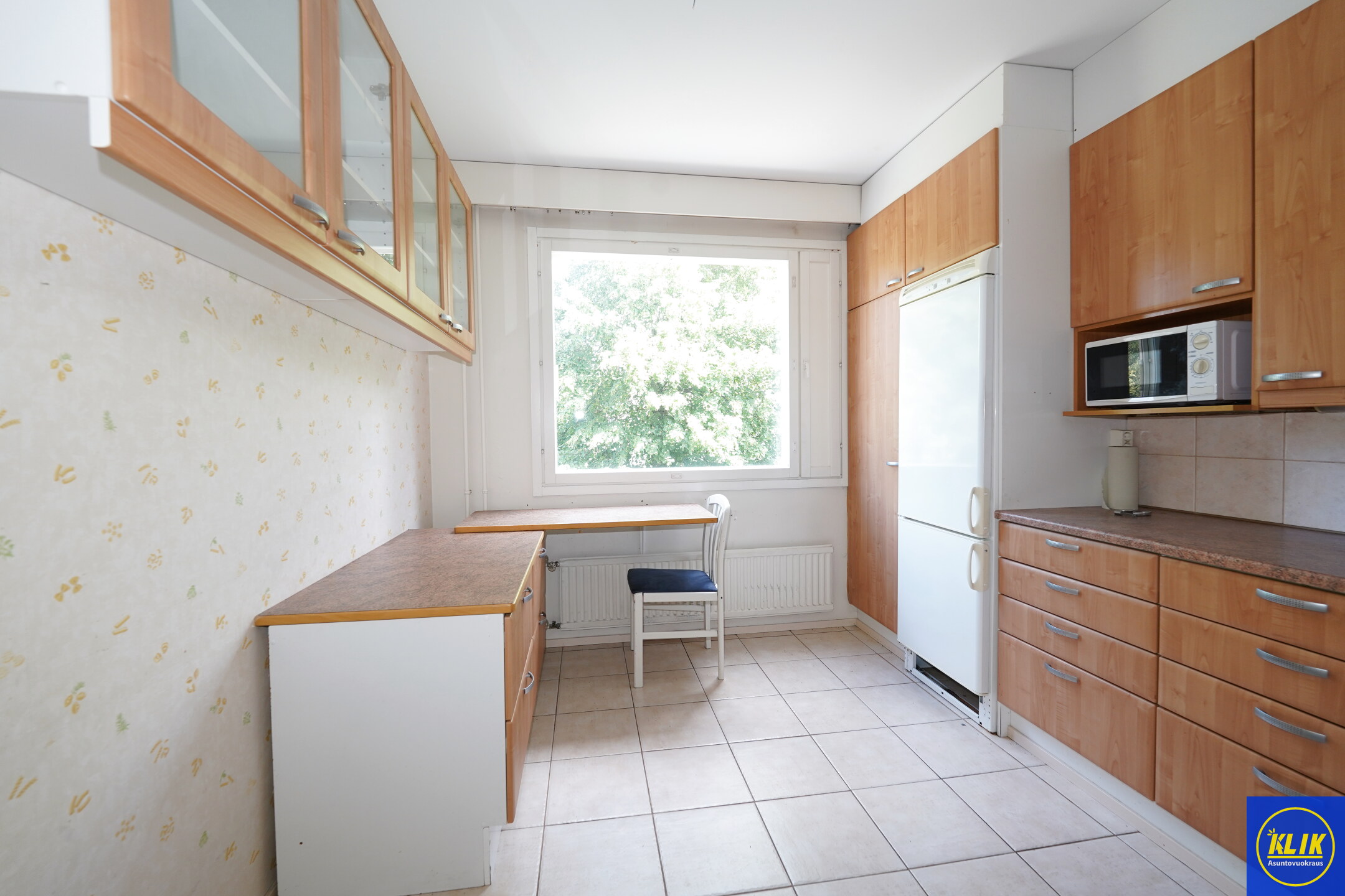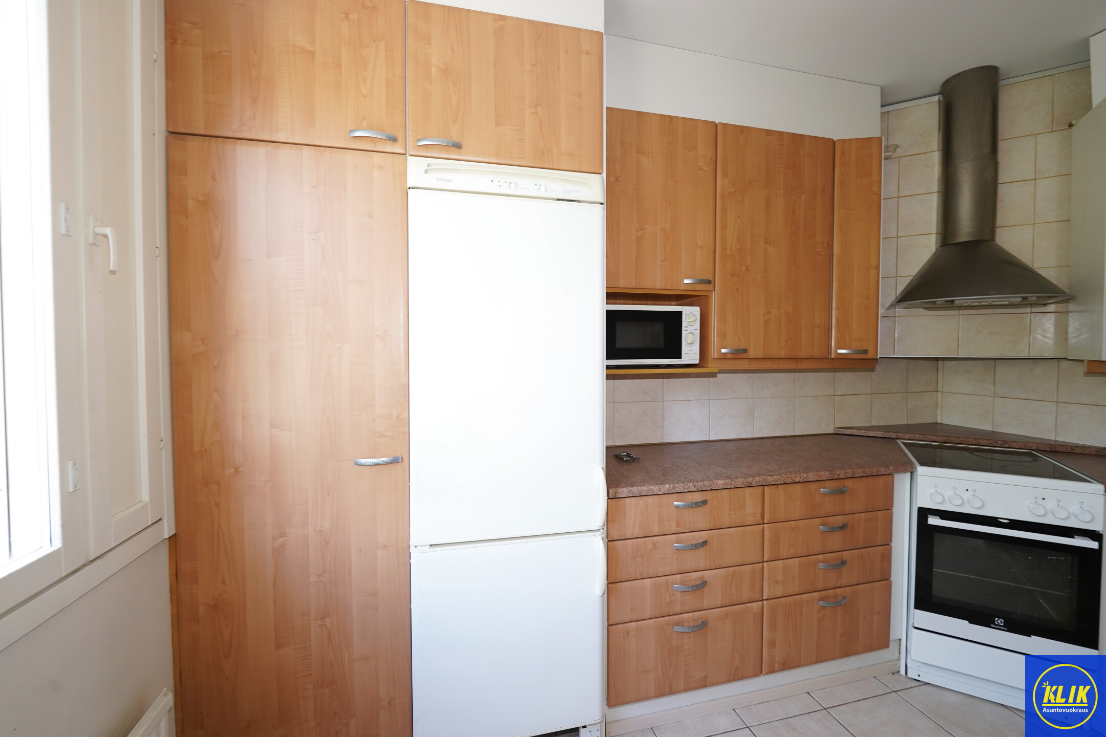 erillinen keittiölaminaattitasot keittiössä, keraaminen- tai induktioliesi; liesituuletin, astianpesukone (45cm), jääkaappipakastin, tilaa isolle ruokapöydälle; paljon kaappitilaa; paljon työskentelytilaa; mikro valmiina keittiössä; mikrohylly