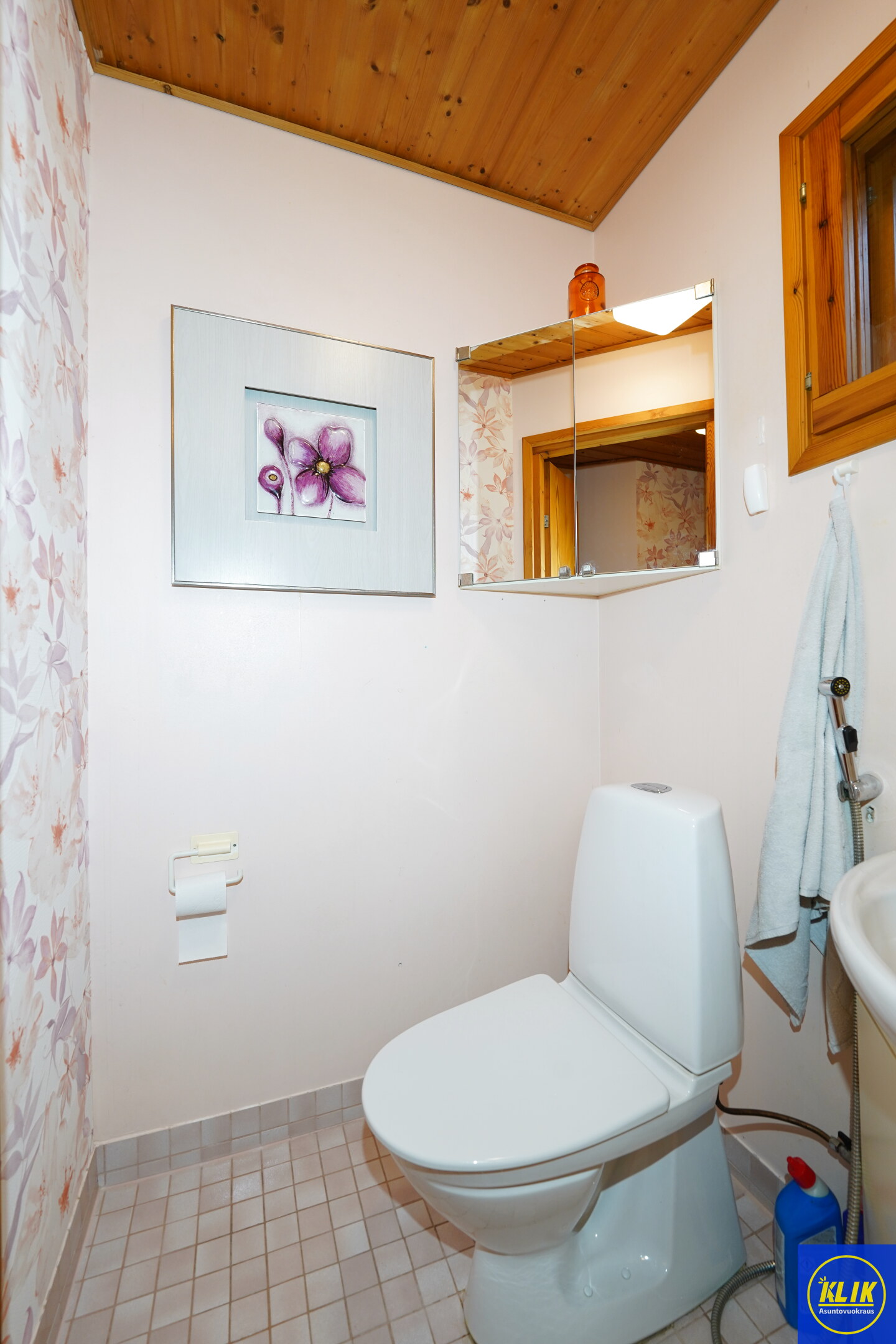laattalattia; laattaseinä, allaskaappi; peilikaappi; muuta säilytystilaa WC:ssä, suihku, pesukonevalmius, kylpyhuoneessa lattialämmitys; oma sauna; kylpyhuoneessa avattava ikkuna
