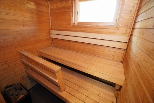 muovimatto; laattaseinä, myös erillinen WC, suihku, pesukonevalmius, sauna; avattava ikkuna