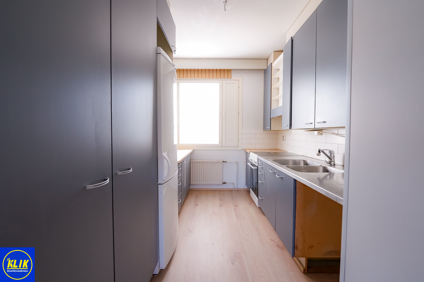 erillinen keittiöterästasot keittiössä; laminaattitasot keittiössä, keraaminen- tai induktioliesi, pesukoneliitos, jääkaappipakastin, paljon kaappitilaa; paljon työskentelytilaa; suuri tiskipöytä , , , , , ,
