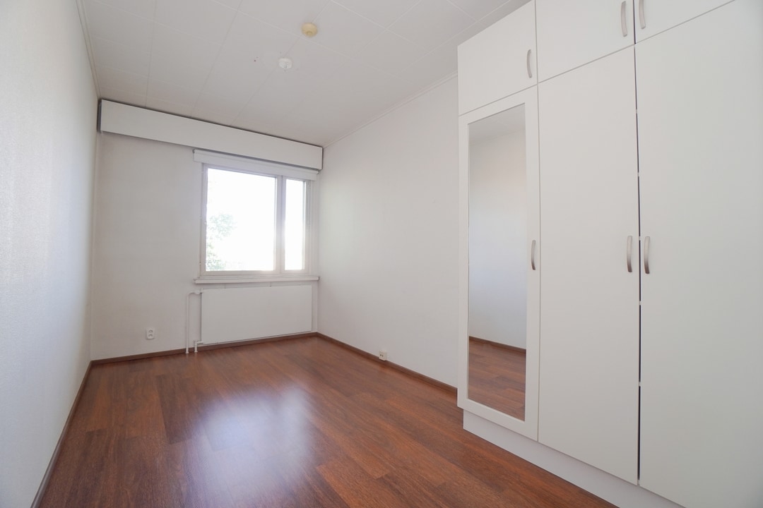Lattiat: laminaattilattiat, seinät: maalatut seinät; tapetoidut seinät, katto: maalattu katto, ikkunat:sälekaihtimet; tuuletusikkunat, erillinen makuuhuone; useita makuuhuoneita; makuuhuoneessa säilytystilaa; makuuhuoneessa vaatekaapit; parisänky mahtuu makuutilaan, avoparveke (ei lasitusta), Huoneistokohtaiset erilliset säilytystilat taloyhtiön käytännön mukaan, muut tilat: autopaikat taloyhtiön käytännön mukaisesti; valoisa asunto; paljon ikkunoita; päätyhuoneisto