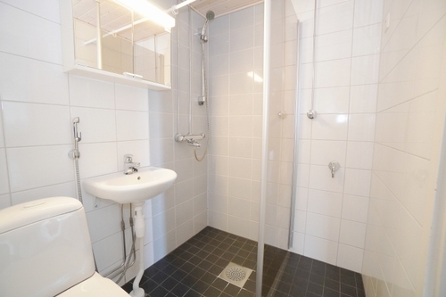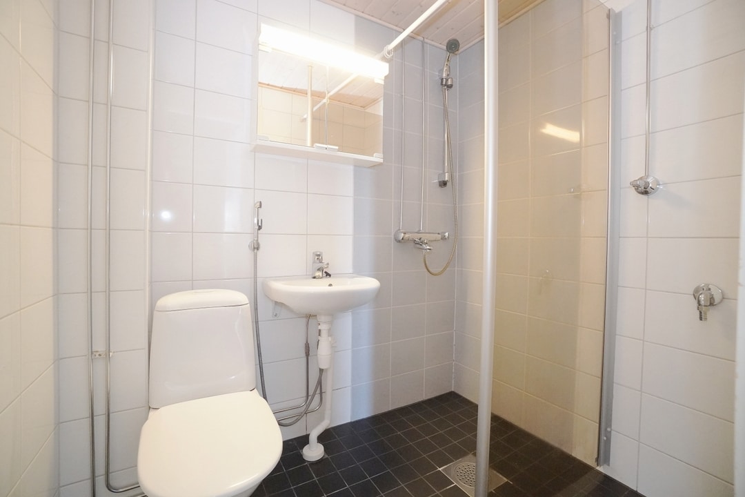 laattalattia; laattaseinä, peilikaappi, suihku; suihkuseinä, pesukonevalmius, lattialämmitys