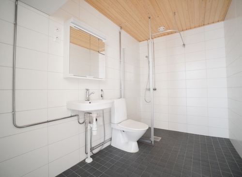 laattalattia; laattaseinä, peilikaappi, suihku, pesukonevalmius, lattialämmitys