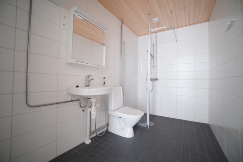 laattalattia; laattaseinä, peilikaappi, suihku, pesukonevalmius, lattialämmitys