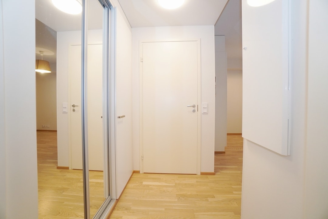 Avokeittiössä kaikki mitä laadukkaaseen elämiseen tarvitset. Eteisessä on liukuovikaapisto peiliovilla ja keittiössä paljon kaappitilaa.