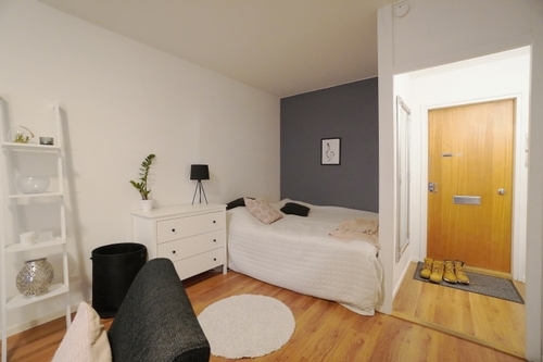 Alkoviin mahtuu hyvin parisänky ja olohuoneen yhteydessä on kaappitilaa säilytystä varten. Taloyhtiössä on tehty putkiremontti 2015, jonka yhteydessä kylpyhuoneet on uusittu. Kylpyhuone on hyvän kokoinen ja siellä on paikka pesukoneelle.